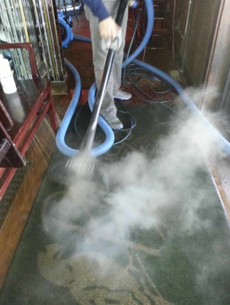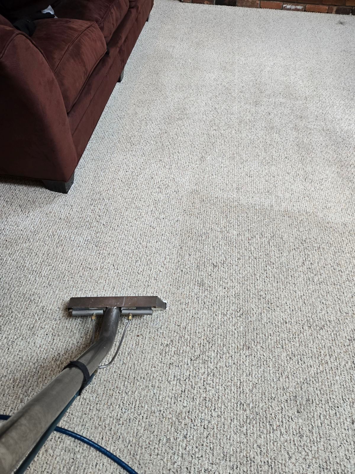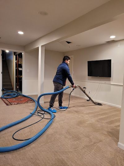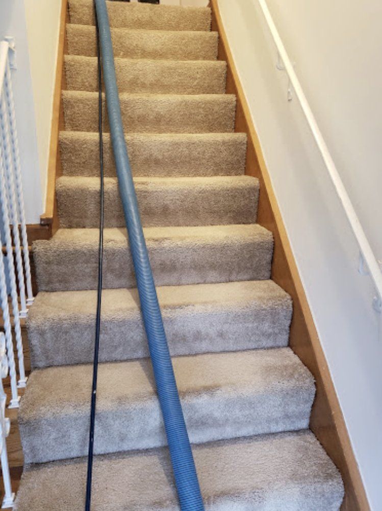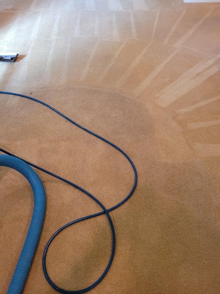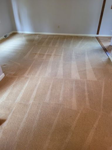 A vacuum cleaner is sitting on a dirty floor in a room.